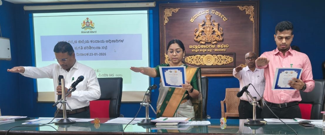 Share Facebook Twitter Email WhatsApp Copy Link ಕಾರವಾರ: ರಾಷ್ಟ್ರೀಯ ಮತದಾರರ ದಿನಾಚರಣೆ ಅಂಗವಾಗಿ ಜಿಲ್ಲಾಧಿಕಾರಿ ಕಚೇರಿಯ ಸಭಾಂಗಣದಲ್ಲಿ ಮತದಾರರ ಪ್ರತಿಜ್ಞಾ ವಿಧಿ ಸ್ವೀಕರಿಸಲಾಯಿತು. ಜಿಲ್ಲಾಧಿಕಾರಿ ಕೆ. ಲಕ್ಷ್ಮಿಪ್ರಿಯಾ, ಹೆಚ್ಚುವರಿ ಜಿಲ್ಲಾಧಿಕಾರಿ ಸಾಜೀದ್ ಮುಲ್ಲಾ, ಉಪ ವಿಭಾಗಾಧಿಕಾರಿ ಪಿ. ಶ್ರವಣ್ ಕುಮಾರ ಇದ್ದರು.