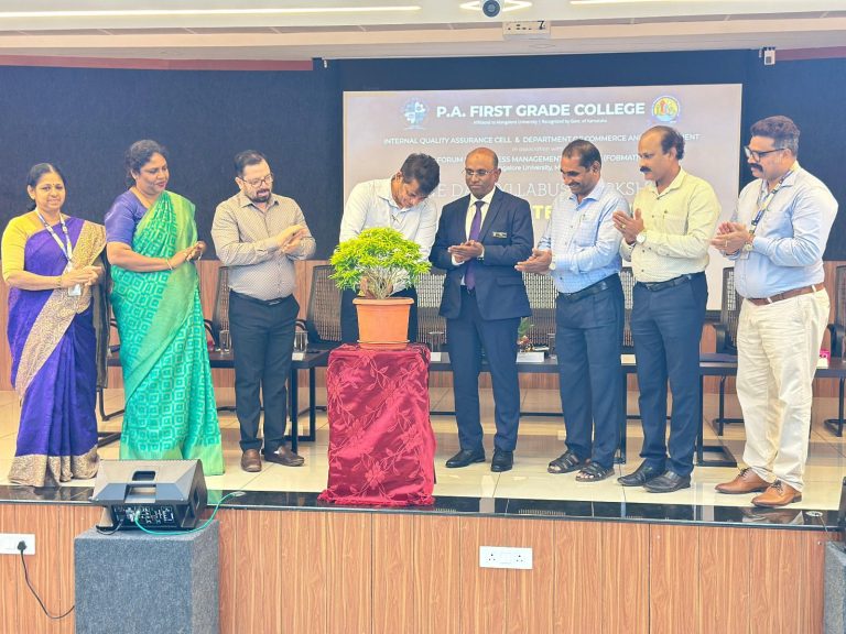 ಮಂಗಳೂರು: ಪಿ.ಎ. ಪ್ರಥಮ ದರ್ಜೆ ಕಾಲೇಜಿನ ಆಂತರಿಕ ಗುಣಮಟ್ಟ ಭರವಸೆಯ ಕೋಶ ಮತ್ತು ವಾಣಿಜ್ಯ ಹಾಗೂ ನಿರ್ವಹಣಾ ವಿಭಾಗವು ಫೋರಮ್ ಆಫ್ ಬಿಸಿನೆಸ್ ಮ್ಯಾನೇಜ್ ಮೆಂಟ್ ಟೀಚರ್ಸ್ ಸಹಯೋಗದಲ್ಲಿ ಬಿ.ಬಿ.ಎ 4 ನೇ ಸೆಮಿಸ್ಟರ್ ಪಠ್ಯಕ್ರಮದ ಕುರಿತ ಕಾರ್ಯಾಗಾರವನ್ನು ಕಾಲೇಜಿನ ಸೆಮಿನಾರ್ ಹಾಲ್ ನಲ್ಲಿ ಆಯೋಜನೆ ಮಾಡಲಾಗಿತ್ತು.